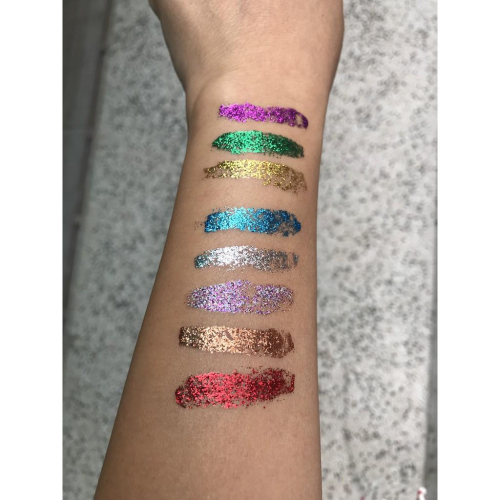 本商品符合衛生安全管理法規定,已完成化妝品產品登錄,全成分皆通過食藥署認可,公開安全請安心使用。 另本賣場包裹內緩衝物以紙張或布袋為主,不過度使用塑膠包材,希望大家在盡情網路購物的同時能為地球釋放小小善意。 品名 : 亮片彩繪液 Aqua Glitter 用途 : 耀眼的亮片隨手一抹就可輕易讓你想要突顯的部位成為目光焦點,液體設計讓原本粉狀的亮片現在可以呈現線條或圖案,可直接塗抹于臉部,頭髮和身體。 用法 : 使用前請搖勻。 容量 : 29ml,共有十種顏色可選: 金 Gold AG-1 銀 Silver AG-2 紅 Red AG-3 藍 Blue AG-4 桃紅 Fuchsia AG-5 綠 Green AG-6 紫 Purple AG-7 草綠 Neon Green AG-8 紅銅 Copper AG-10 五彩(紫) Violet AG-11 保存方法 : 為了避免蒸發,使用後請把瓶子和螺紋擦乾淨,然後蓋緊瓶蓋。請置於陰涼處存放即可。 原產地 : 美國。 使用注意事項 : 肌膚若有出現不適請暫停使用。 有效期限 : 詳見商品貼的中文標示。 全成分名稱 : AQUA (WATER), POLYETHYLENE TEREPHTHALATE, ACRYLATES COPOLYMER, POLYVINYL ALCOHOL, PVP,MAY CONTAIN (+/-): CI NO. 77000, 19140, 15850, 15880, 77510, (ALUMINIUM, YELLOW 5, RED 7, RED 34, FERRIC FERROCYANIDE)