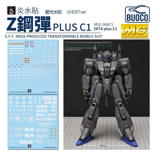 BUOCO、炎水貼、GHOST版、MG、1/100、Z PLUS、Z PLUS C1、ZETA、Gundam Sentinel、前哨戰、螢光水貼、鋼彈模型、水貼、組裝模型