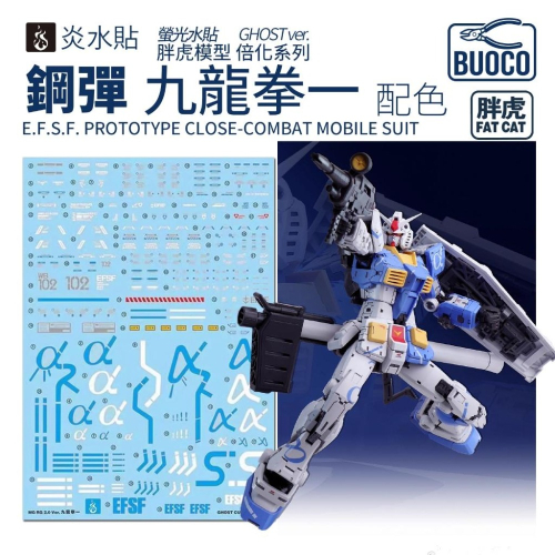 BUOCO、炎水貼、GHOST版、胖虎模型、倍化系列、RX-78-2、九龍拳一、Kowloon Style、螢光水貼、鋼彈模型、水貼、模型貼紙、UV導光、1/100
