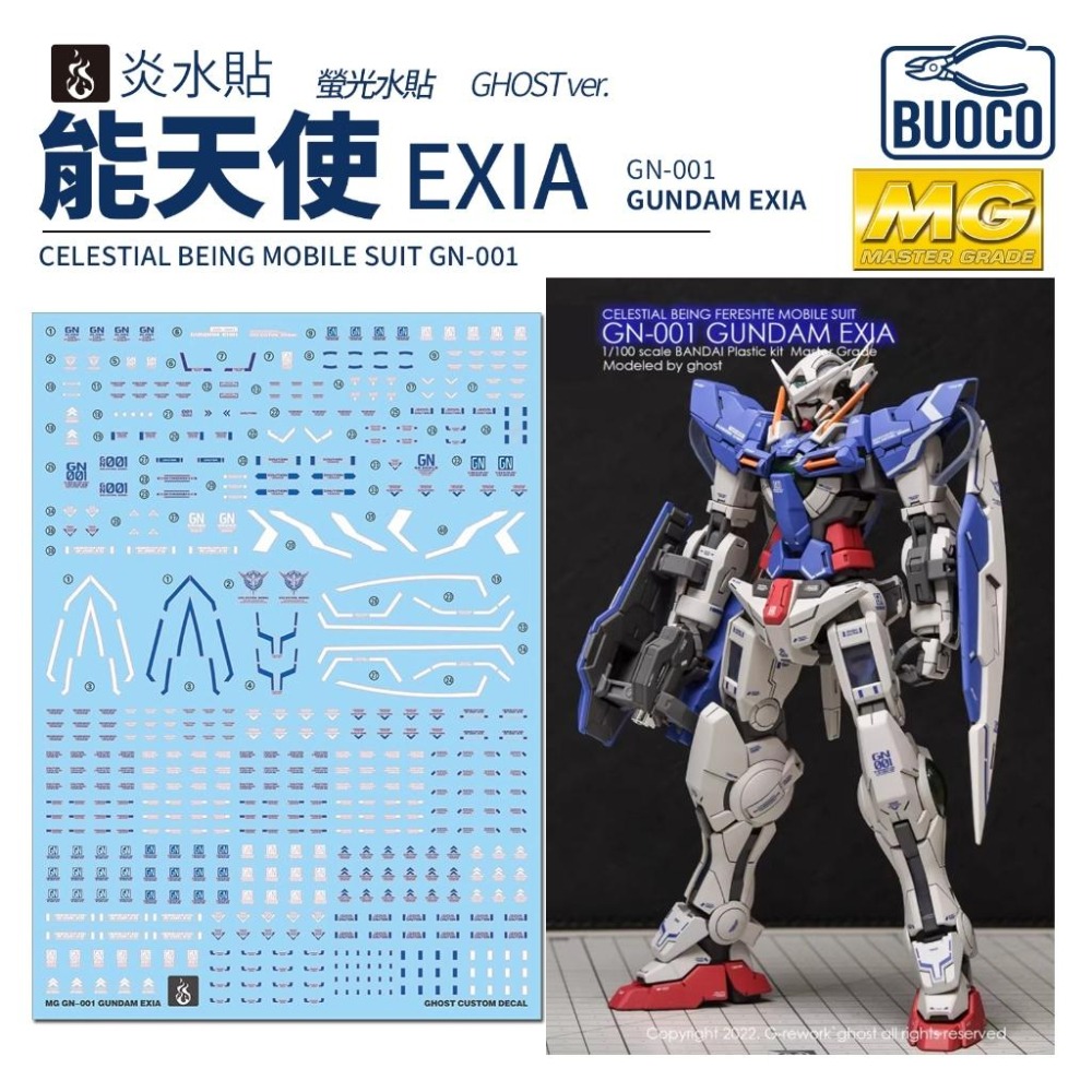 BUOCO、炎水貼、GHOST版、MG、1/100、GN-001、Exia、能天使鋼彈、00鋼彈、七劍系統、螢光水貼、水貼、鋼彈模型、組裝模型