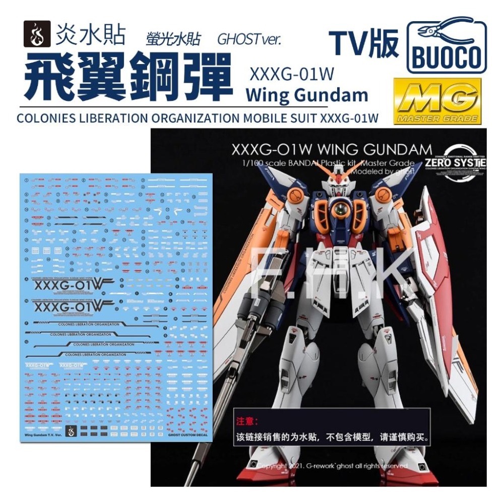 BUOCO、炎水貼、GHOST版、MG、1/100、飛翼鋼彈、WING GUNDAM、TV版、動畫版、XXXG-01W、鋼彈W、螢光水貼、鋼彈模型、水貼、組裝模型