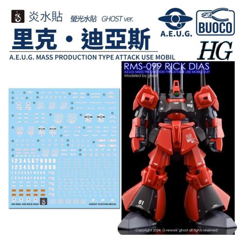 BUOCO、炎水貼、GHOST、水貼、螢光水貼、RickDias、RMS-099、里克迪亞斯、Z鋼彈、AEUG、HGUC、水貼補強、模型