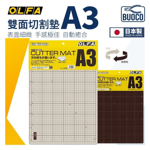 OLFA CM-A3 為日本製專業雙色切割墊,尺寸 320×450×2mm。