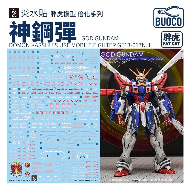 BUOCO、炎水貼、GHOST版、胖虎模型、倍化系列、神鋼彈、GOD GUNDAM、多蒙卡修、1/100、RG樣式、高清水貼、格鬥鋼彈、水貼、模型貼紙、鋼彈模型