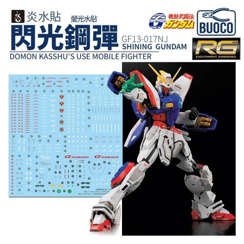 BUOCO、炎水貼、GHOST、螢光水貼、RG42、ShiningGundam、閃光鋼彈、GF13-017NJ、G Gundam、水貼、模型