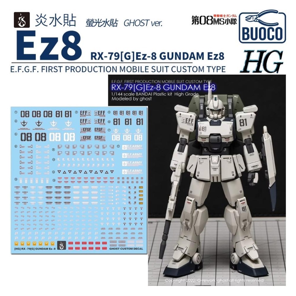 BUOCO、炎水貼、GHOST、Ez8、RX79、HG、08MS、地球聯邦軍、螢光水貼、模型水貼、戰損、實戰風