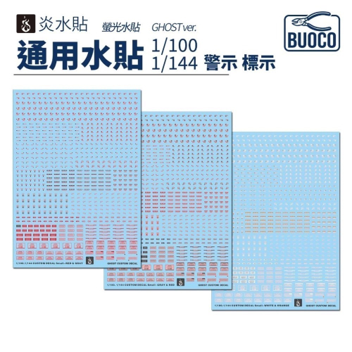 BUOCO、炎水貼、GHOST、通用水貼、螢光水貼、警示貼紙、caution、工業風、模型補件、鋼彈貼紙、1/100、1/144、水貼、GK、改件