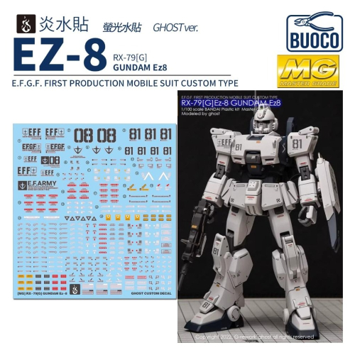 BUOCO、炎水貼、GHOST版、MG、1/100、RX-79[G]、Ez-8、陸戰型鋼彈、08MS小隊、希洛阿瑪達、螢光水貼、鋼彈模型、水貼、組裝模型