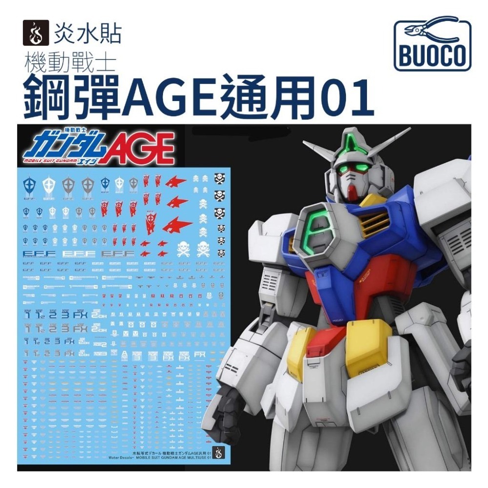 🔍 關鍵字 BUOCO、炎水貼、GHOST版、AGE、AGE1、AGE2、AGE3、AGEFX、MG、RG、HG、1/144、1/100、螢光水貼、鋼彈AGE、水貼、鋼彈模型、組裝模型