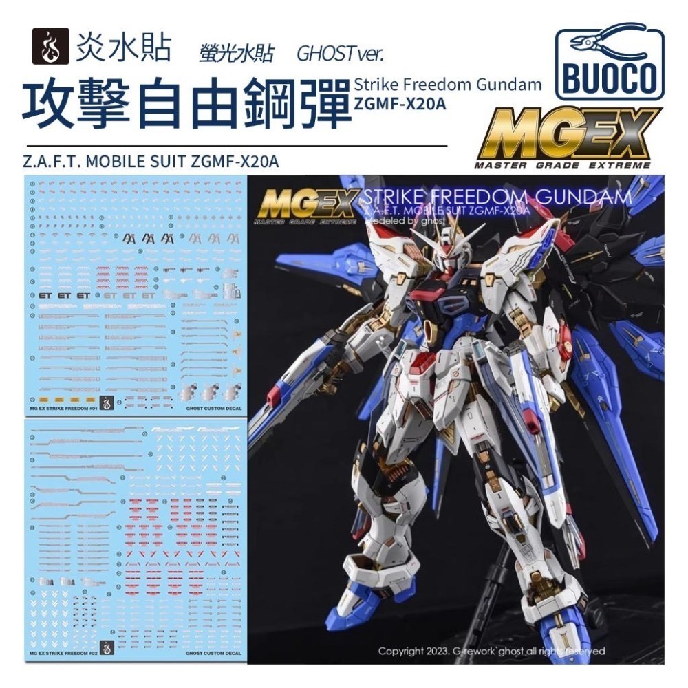 BUOCO、炎水貼、GHOST版、MGEX、ZGMF-X20A、Strike Freedom、攻擊自由鋼彈、SEED DESTINY、螢光水貼、鋼彈模型、水貼、組裝模型