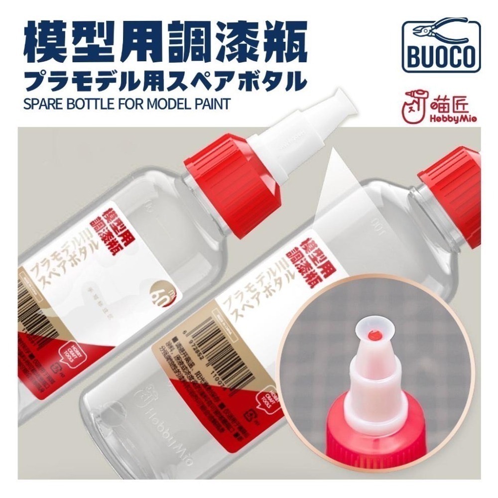 BUOCO、喵匠、HOBBYMIO、調漆瓶、調漆罐、PET調漆瓶、碗口型、帶刻度、玻璃珠、尖嘴瓶、模型用、模型工具、噴漆調色、補土調和、模型耗材