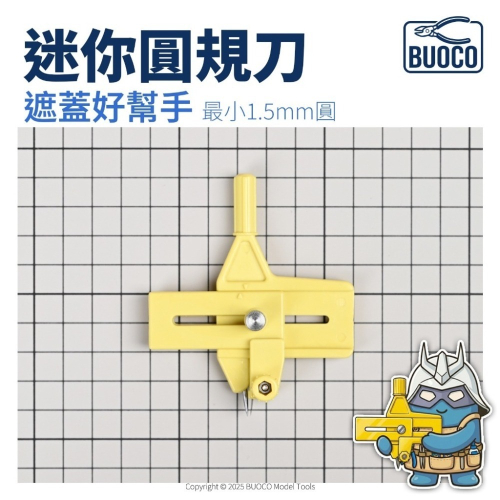 迷你圓規刀是模型玩家在製作遮蓋膠帶、圓形標誌、膠片等等時的度輔助工具。最小可切 1.5mm 圓,最大可達 100mm。使用一般市售 9mm 刀片即可替換,取得容易,維修成本低。