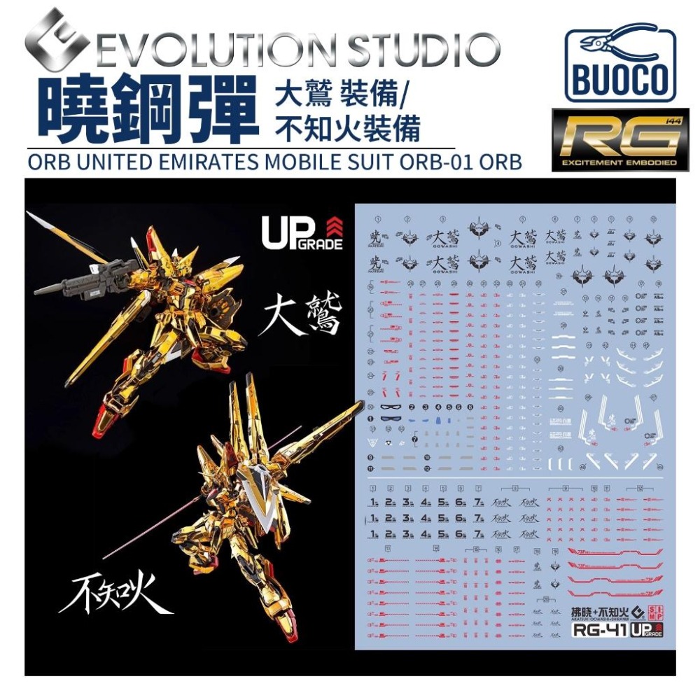 [BUOCO] EVO RG-41 RG 曉鋼彈 (Akatsuki) 大鷲 / 不知火裝備 雙版本通用螢光水貼 (1/144) - 卡佳里 / 穆 / 歐普 / 八咫鏡 / 龍騎兵 / 黃金意志 / SEED Destiny