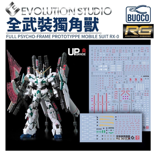 BUOCO, EVO, 水貼, 鋼彈, 模型, 螢光水貼, RG, 全武裝獨角獸, FullArmorUnicorn, 最終決戰, 綠骨架, 覺醒, 巴納吉, 94式承載機, 燃料槽, 1/144
