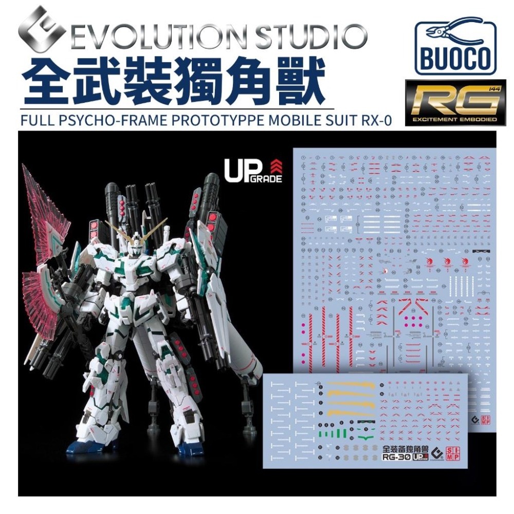[BUOCO] EVO RG-30 RG 全武裝獨角獸鋼彈 專用螢光水貼 (1/144) - 最終決戰 / 綠骨架 / 覺醒模式 / 巴納吉 / 94式承載機 / 燃料槽 / UC
