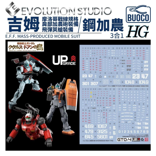 [BUOCO] EVO HG-G04 HG 吉姆 (摩洛哥戰線/肩部加農砲) & 鋼加農 (多安版) 3合1 螢光水貼 (1/144) - 史列格 / 凱西登 / 隼人 / 卡薩布蘭卡 / RGM-79 / RX-77-02 / 庫克羅斯德安之島