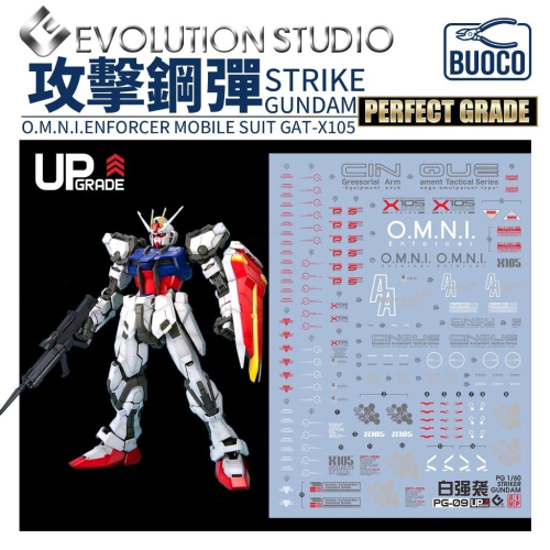 BUOCO, EVO, 水貼, 鋼彈, 模型, 螢光水貼, PG, 攻擊鋼彈, StrikeGundam, GAT-X105, 煌大和, 大天使號, 聯合軍, OMNI, 破甲者, 1/60, SEED