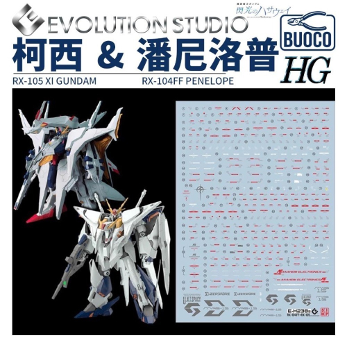 BUOCO, EVO, 水貼, 鋼彈, 模型, 螢光水貼, HG, 閃光的哈薩威, HathawaysFlash, Ξ鋼彈, XiGundam, 柯西, 克西, 潘娜洛普, Penelope, 大白鵝, 馬法狄, Mafty, 雷恩艾姆, LaneAim, 阿納海姆 ,潘妮洛普 ,佩涅羅佩