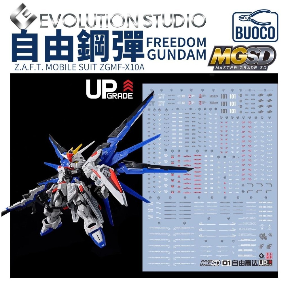 BUOCO, EVO, 水貼, 鋼彈, 模型, 螢光水貼, MGSD, 自由鋼彈, FreedomGundam, 煌大和, KiraYamato, SEED, 札夫特, ZAFT, 全彈發射, SD鋼彈, X10A