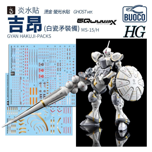 #BUOCO #炎水貼 #GQuuuuuuX #吉昂 #Gyan #Xavier #艾格沙貝 #白瓷矛 #Hakuji #Ghost #鋼普拉 #水貼 #螢光水貼 #燙金水貼 #模型製作 #Gunpla #HG #水轉印 #山下育人