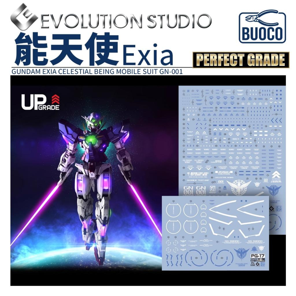 BUOCO, EVO, 水貼, 鋼彈, 模型, 螢光水貼, PG, 能天使, Exia, 剎那, 天上人, CelestialBeing, GN太陽爐, 七劍, 1/60, 鋼彈00, Gundam00