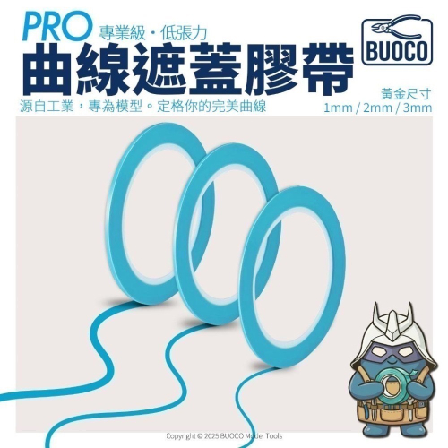 BUOCO 嚴選工業級 **Fine Line Tape (細紋膠帶)** 材質,將原本用於汽車彩繪、航太塗裝的高規格工藝,轉化為適合模型玩家的 **1mm / 2mm / 3mm** 黃金尺寸。