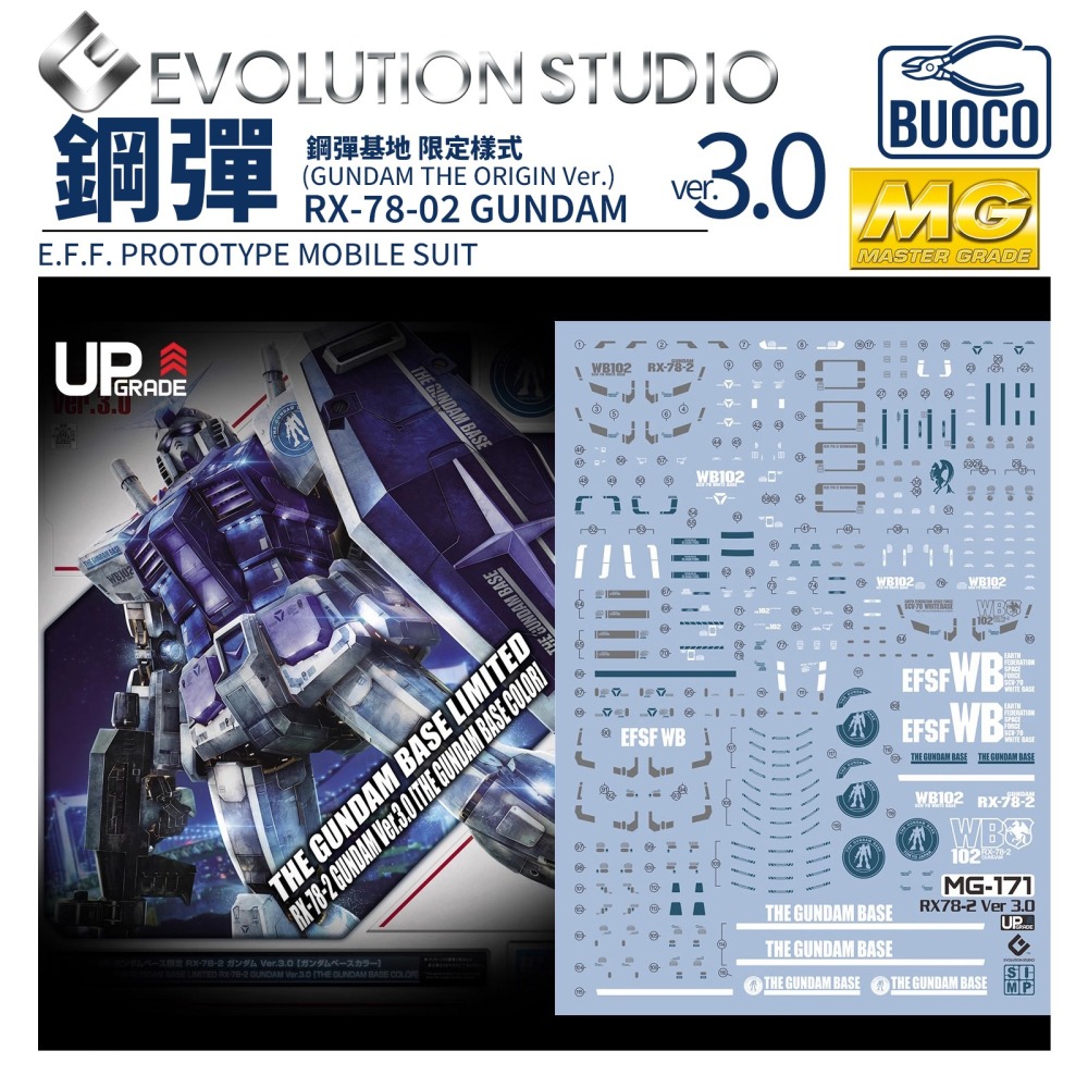 [BUOCO] EVO MG-171 機動戰士鋼彈 MG RX-78-2 初鋼 Ver.3.0 / 鋼彈基地限定 螢光水貼 (1/100) - 阿姆羅 / 台場 / 白色基地 / 專用標誌 / WB102