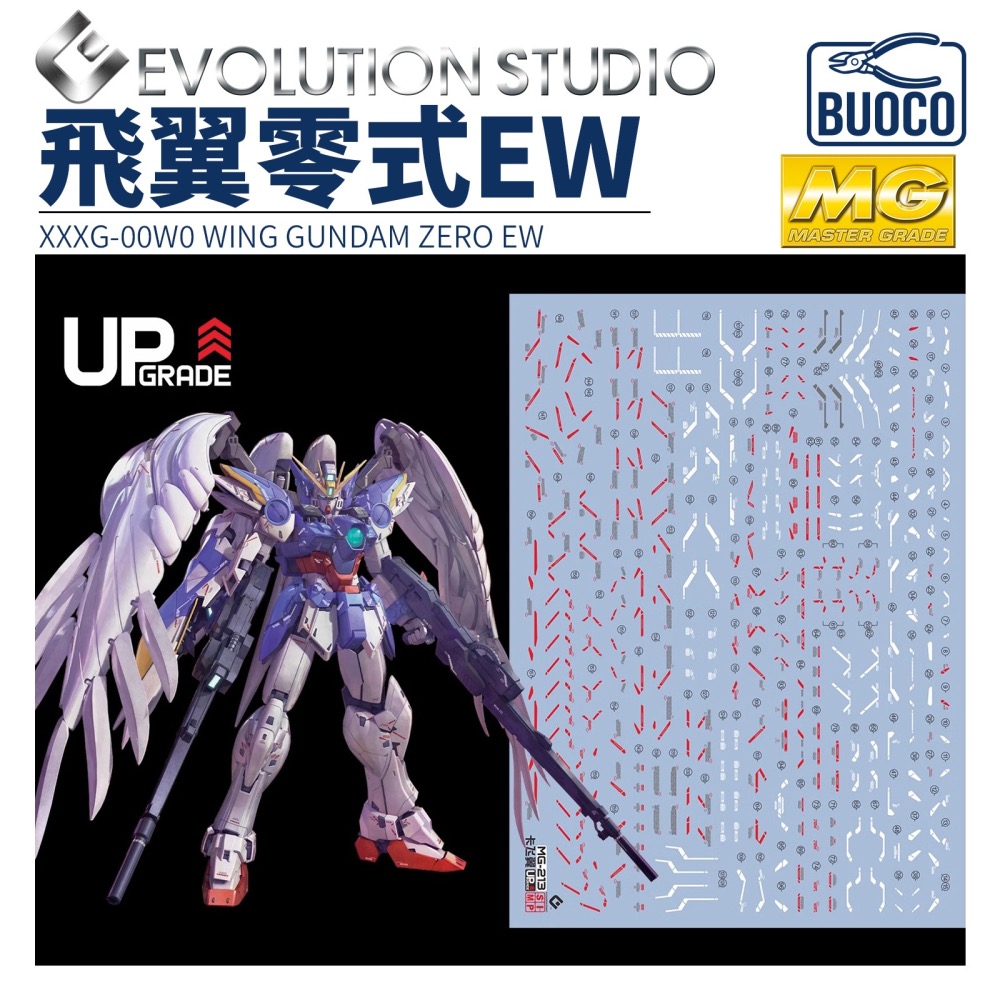 本商品為第三方外觀升級配件,適用於 BANDAI 發售之 MG 飛翼鋼彈零式 EW Ver.Ka (2020年版) 模型,不包含模型本體。舊版 MG 雖可通用部分圖案,但尺寸可能不完全貼合。