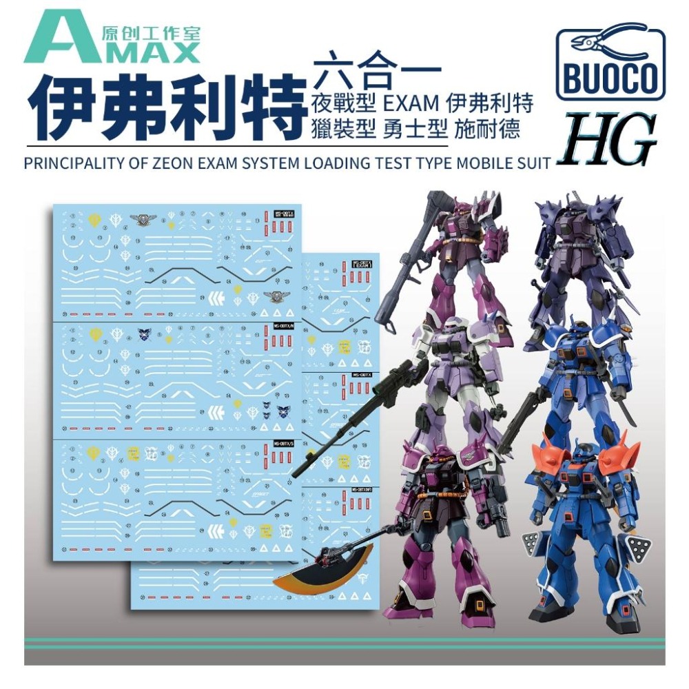 [BUOCO] AMAX HG 1/144 伊弗利特 Efreet 6合1 通用 夜戰型 改 EXAM 獵裝型 勇士型 施耐德 條紋補色 螢光 水貼