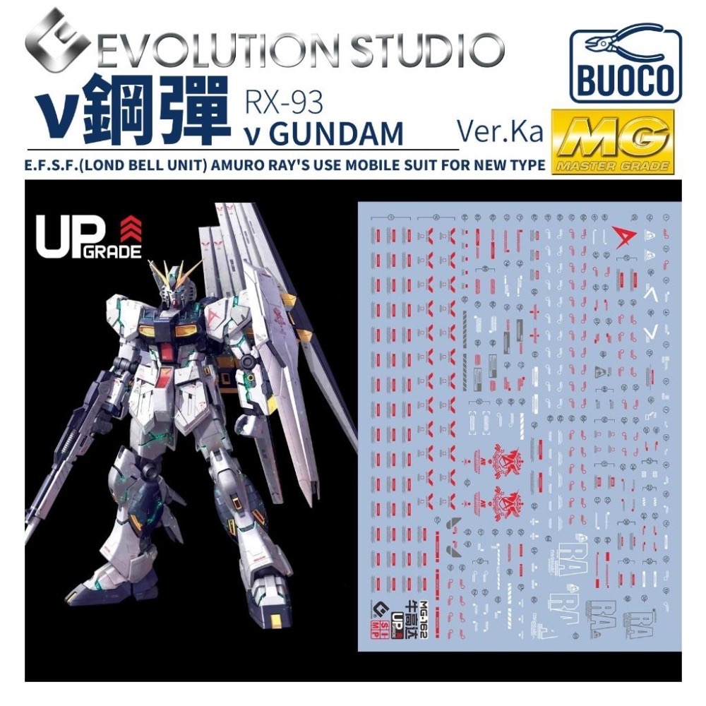 BUOCO, EVO, 水貼, 鋼彈, 模型, 螢光水貼, MG, CharsCounterattack, NuGundam, VerKa, AmuroRay, LondoBell, FinFunnel, RX93, Nu鋼彈, 牛鋼, 阿姆羅, 隆德貝爾, 卡版, 精神感應框架 ν鋼彈,