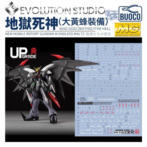 [BUOCO] EVO PB-MG-142 新機動戰士鋼彈W 敗者的榮光 地獄死神鋼彈 EW + 擴充零件 (蝠翼裝備/大黃蜂) 螢光水貼 (1/100) - 迪歐 / 路瑟裝備 / 雙鎌刀 / 專用標誌