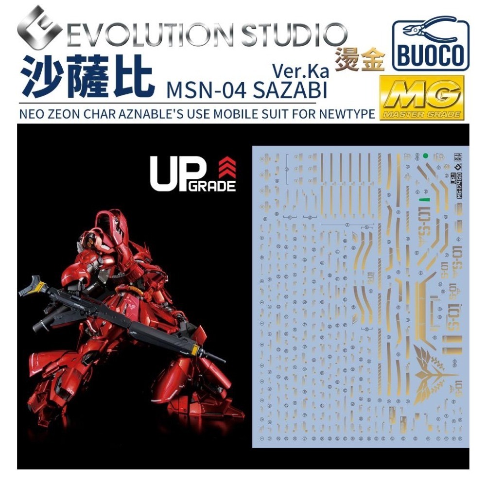BUOCO, EVO, 水貼, 鋼彈, 模型, 燙金水貼, MG, CharsCounterattack, Sazabi, VerKa, CharAznable, NeoZeon, GoldStamping, MSN04, 沙薩比, 夏亞, 新吉翁, 燙金, 總帥機, 卡版