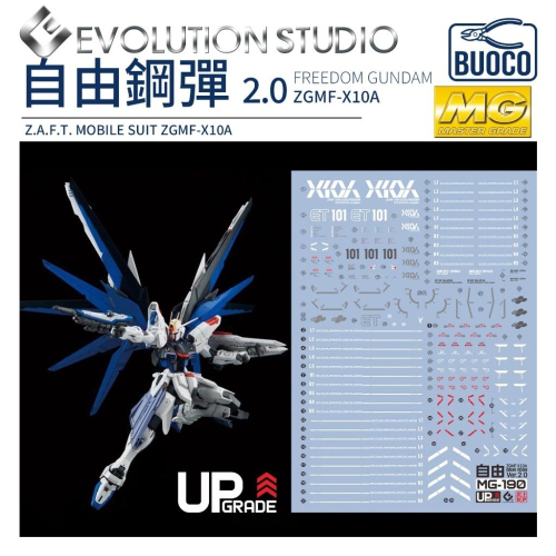 BUOCO, EVO, 水貼, 鋼彈, 模型, 螢光水貼, MG, SEED, FreedomGundam, Ver2, KiraYamato, ZAFT, Eternal, FullBurst, 自由鋼彈, 煌大和, 札夫特, 永恆號, 全彈發射, 2.0版