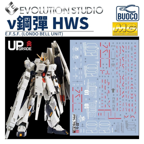[BUOCO] EVO PB-MG-76 機動戰士鋼彈 逆襲的夏亞 ν鋼彈(Nu鋼彈) HWS (重武裝型) Ver.Ka 螢光水貼 (1/100) - 阿姆羅 / 隆德貝爾 / 卡版 / 超級MEGA步槍 / 專用標誌