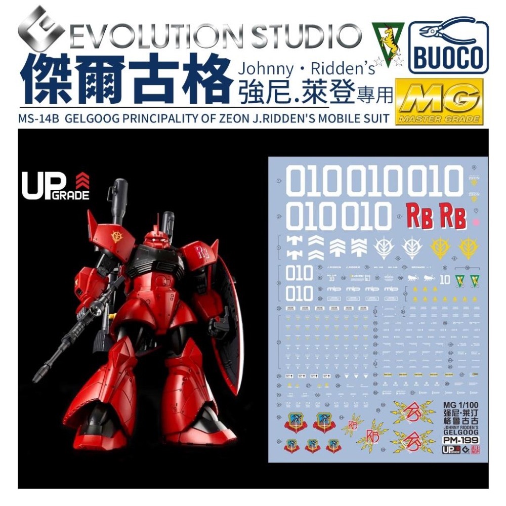 [BUOCO] EVO PB-MG-199 機動戰士鋼彈 MSV 傑爾古格 2.0 強尼萊登專用機 螢光水貼 (1/100) - 真紅閃電 / 高機動型 / 勇士 / 專用標誌