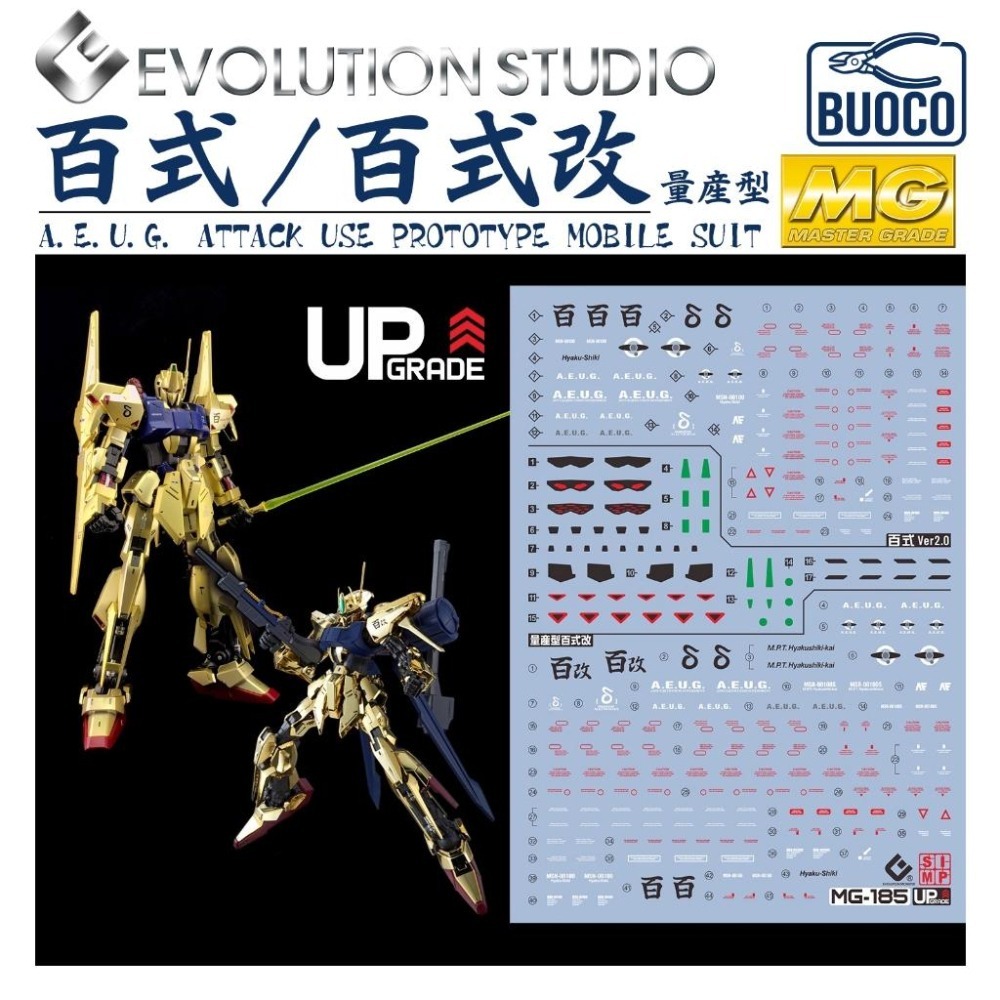 [BUOCO] EVO MG-188 機動戰士Z鋼彈 MG 百式 Ver.2.0 / 百式改 / 量產型百式改 螢光水貼 (1/100) - 庫瓦多羅 / 幽谷 / 金色機體 / 專用標誌 / MSN-00100