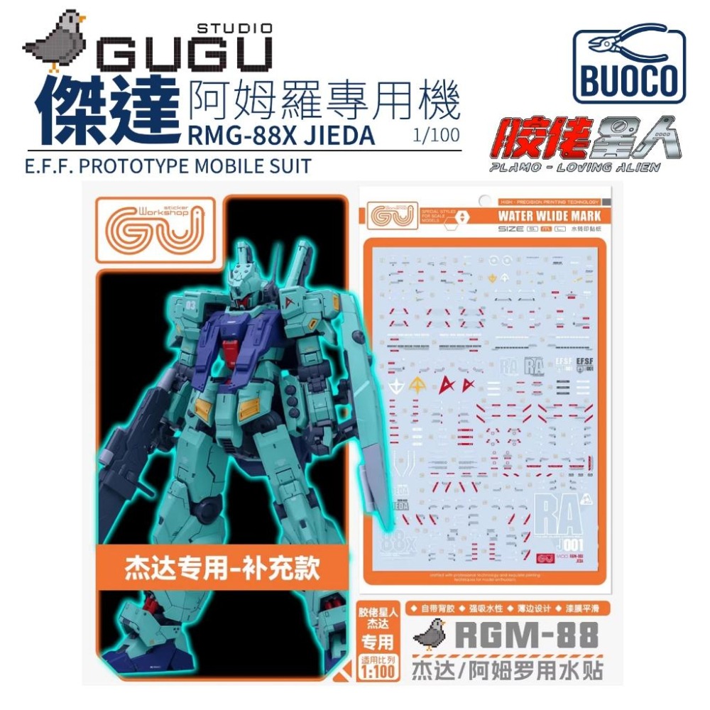 [BUOCO] 咕廠長 GUGU 1/100 RGM-88X 傑達 Jeda 專用 膠佬星人對應 阿姆羅專用機 朗德貝爾 水貼