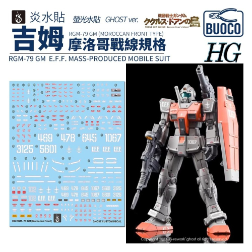 炎水貼、水貼、吉姆、GM、RGM-79、摩洛哥戰線、庫克羅斯德安之島、德安之島、Origin、GTO、PB限定、Ghost、HG、鋼普拉、Gunpla、模型貼紙、水轉印、螢光水貼、卡薩布蘭卡