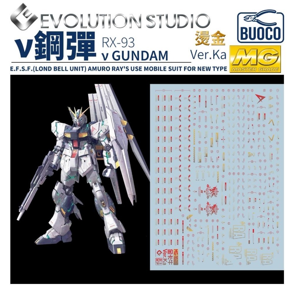 BUOCO, EVO, 水貼, 鋼彈, 模型, 燙金水貼, MG, CharsCounterattack, NuGundam, VerKa, AmuroRay, LondoBell, GoldStamping, RX93, Nu鋼彈, ν鋼彈, 牛鋼, 阿姆羅, 燙金, 卡版, 逆襲的夏亞