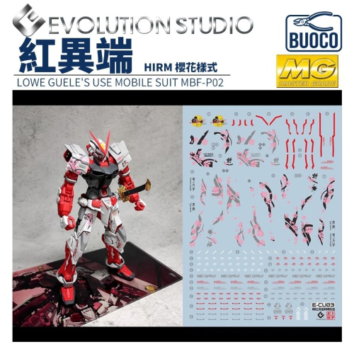 BUOCO, EVO, 水貼, 鋼彈, 模型, 螢光水貼, MG, SEED, Astray, RedFrame, 異端鋼彈, 紅色機, 羅裘爾, LoweGuele, 菊一文字, 櫻花, Sakura, HiRM, 廢物商, 武士刀