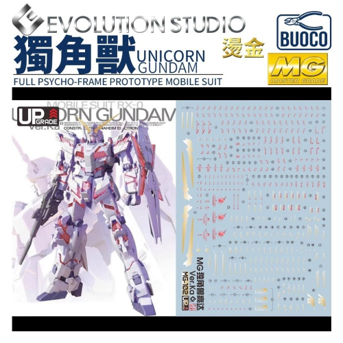BUOCO, EVO, 水貼, 鋼彈, 模型, 燙金水貼, MG, GundamUC, UnicornGundam, VerKa, BanagherLinks, VistFoundation, GoldStamping, RX0, 獨角獸, 巴納吉, 畢斯特財團, 燙金, 卡版, 可能性之獸
