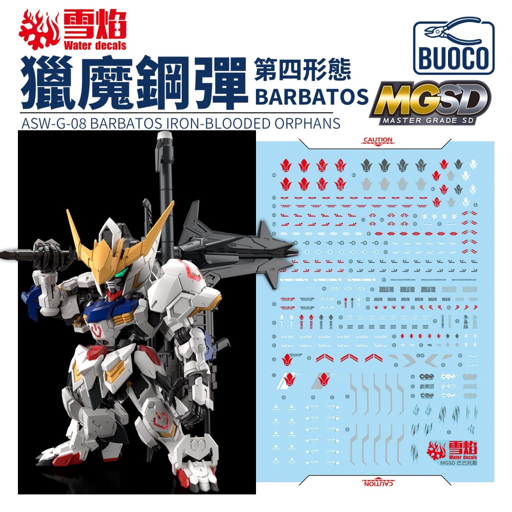 [BUOCO] 雪焰 MGSD-02 獵魔鋼彈 Barbatos 鐵血孤兒 鐵華團 三日月 ASW-G-08 高精度 螢光 水貼