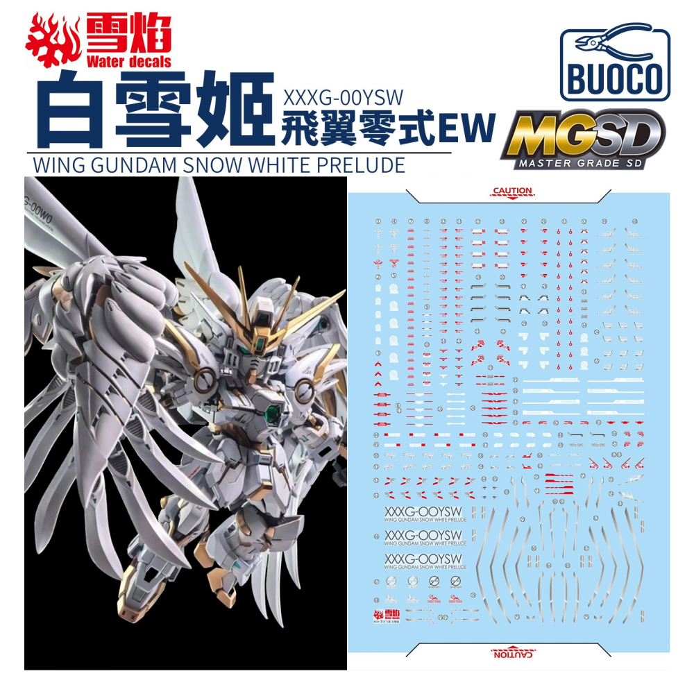 許多玩家會將 MGSD 飛翼鋼彈零式 EW 重新塗裝為這台夢幻名機。為此,BUOCO 帶來了 **雪焰 (Snow Flame)** 編號 **MGSD-03-1** 專用款水貼,為您的白雪姬改造計畫提供最完美的最後一塊拼圖。
