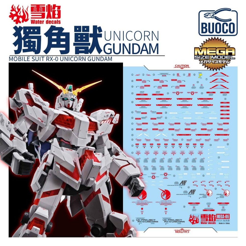 [BUOCO] 雪焰 MEGA 1/48 獨角獸鋼彈 RX-0 Unicorn 破壞模式 螢光 水貼 MEGA-01