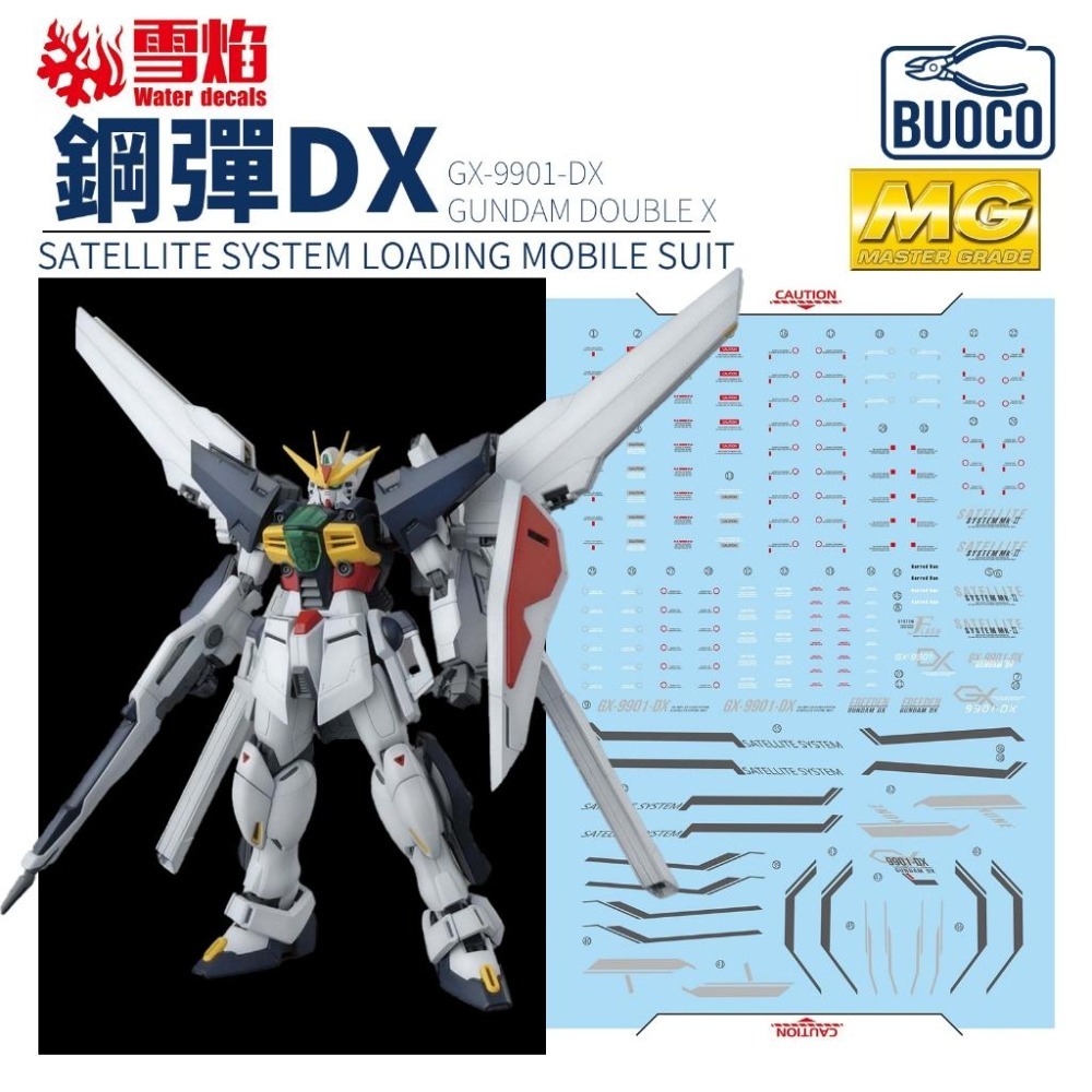 BUOCO, 雪焰, GundamDX, 鋼彈DX, 鋼彈DoubleX, GX9901DX, 鋼彈X, 卡洛德, 蒂法, 雙衛星加農砲, 衛星系統, 雙色螢光, MG, 水貼, 模型