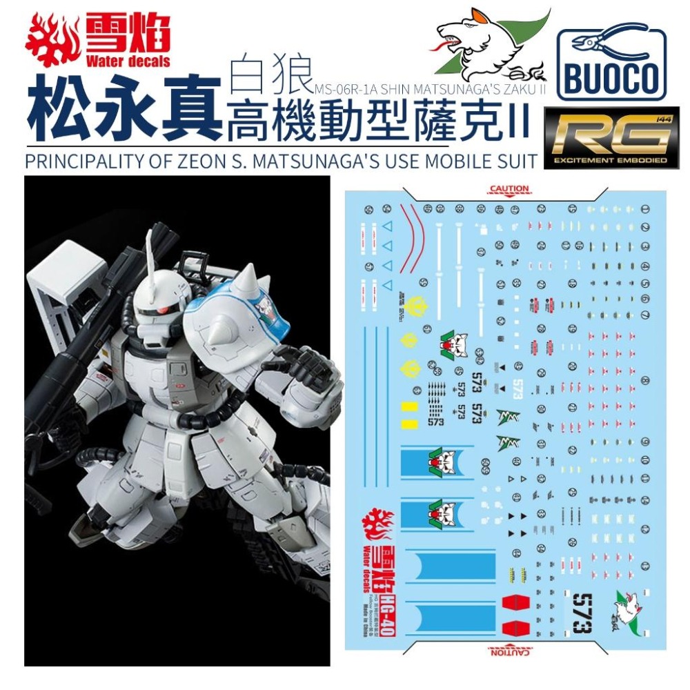 BUOCO, 雪焰, Zaku, ZakuII, 薩克, 高機動型, HighMobilityType, ShinMatsunaga, 松永真, WhiteWolf, 白狼, 所羅門的白狼, MS06R1A, RG, RealGrade, 螢光水貼, 鋼彈, 模型