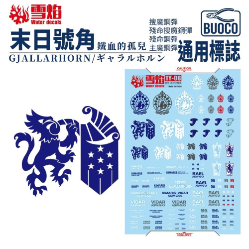 BUOCO, 雪焰, IBO, IronBloodedOrphans, 鐵血的孤兒, Gjallarhorn, 末日號角, SevenStars, 七星家族, Kimaris, 搜魔, Vidar, 殘命, Bael, 主魔, Gaelio, 蓋里歐, McGillis, 麥吉利斯, 通用標誌, 螢光水貼, 鋼彈, 模型