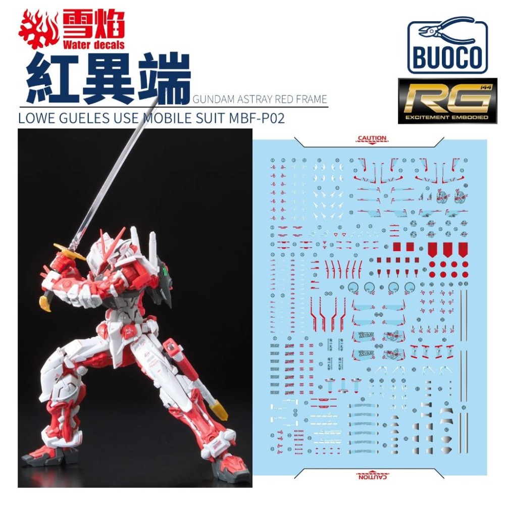 [BUOCO] 雪焰 RG-50 1/144 異端鋼彈 紅色機 紅異端 Astray Red Frame 羅·裘爾 菊一文字 螢光 水貼