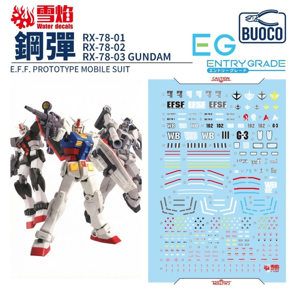 [BUOCO] 雪焰 EG 1/144 RX-78-2 初鋼 鋼彈 G-3 原型機 真實配色 全制霸 螢光 水貼 EG-07