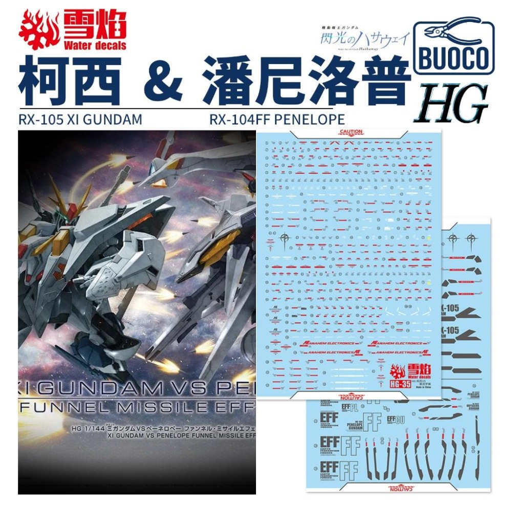 BUOCO, 雪焰, XiGundam, Ξ鋼彈, 柯西鋼彈, RX105, Penelope, 潘娜洛普, RX104FF, Odysseus, 奧德修斯, Mafty, 馬法狄, Hathaway, 閃光的哈薩威, 2in1, HG, 螢光水貼, 模型